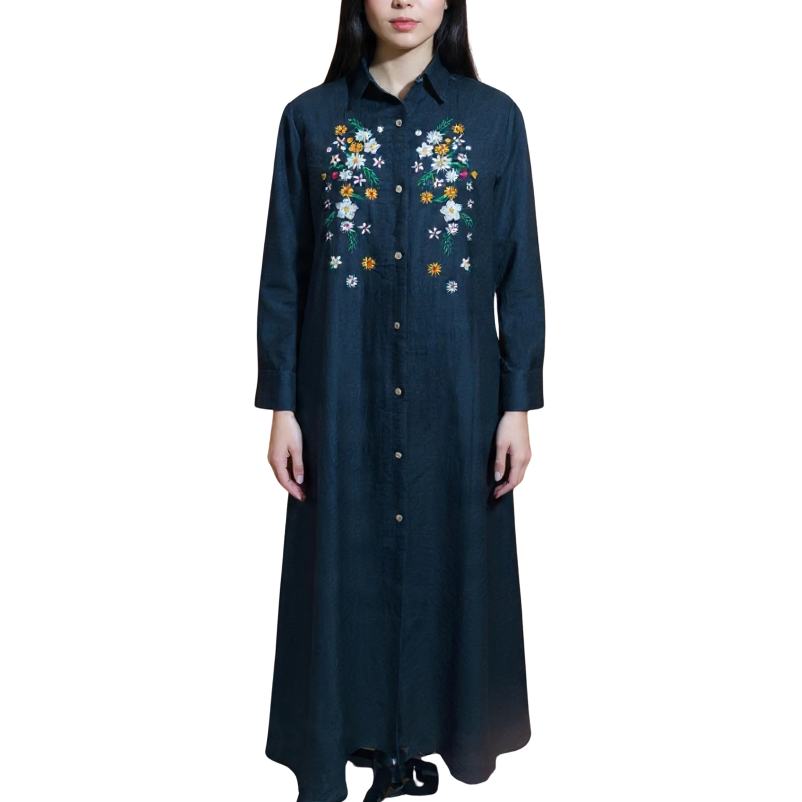 Floral Embroidered Long-Sleeve Gown