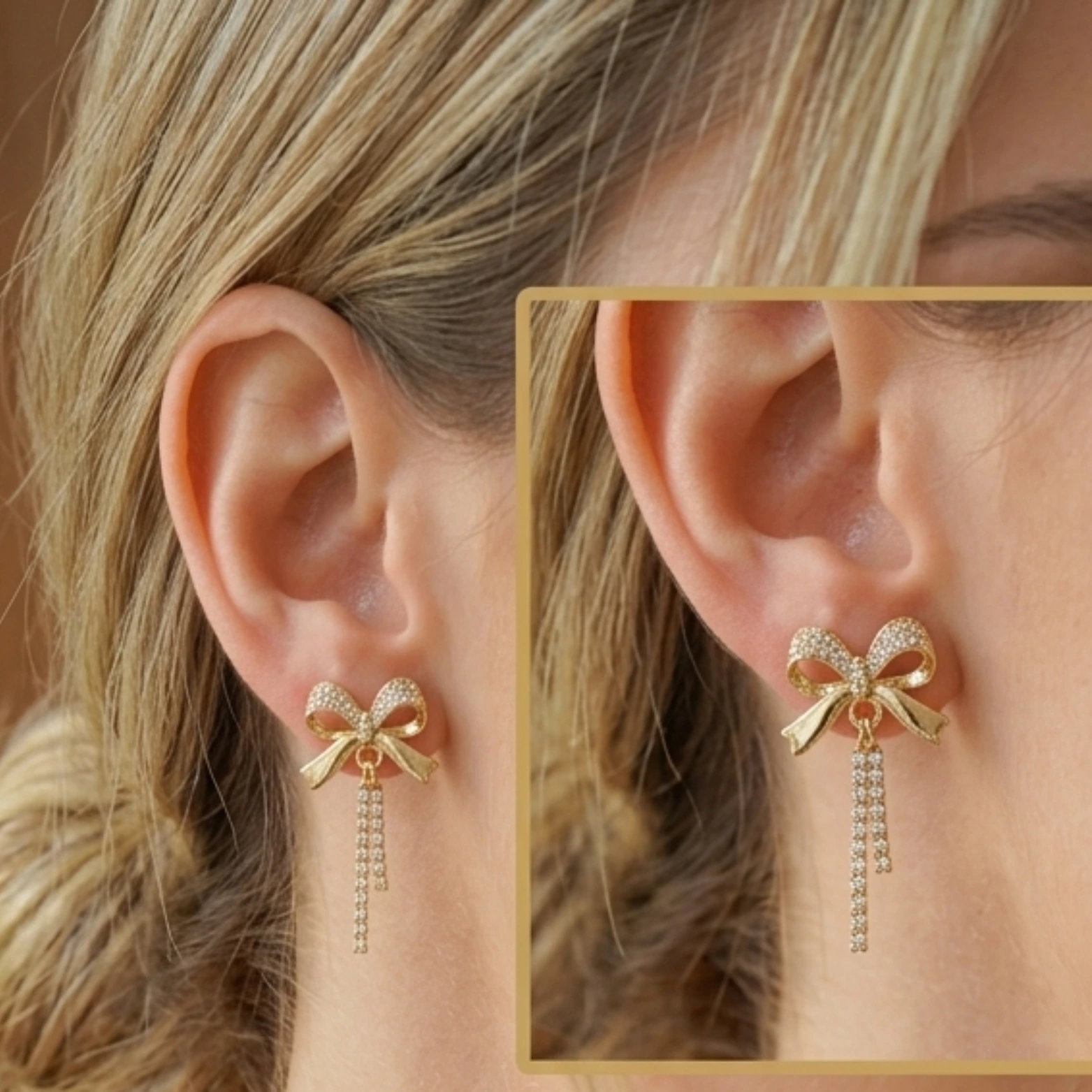 • 🎀 Elegant Coquette Design: Featuring a sophisticated ribbon-bow motif with shimmering cubic zirconia accents and delicate hanging tassels for a touch of movement.