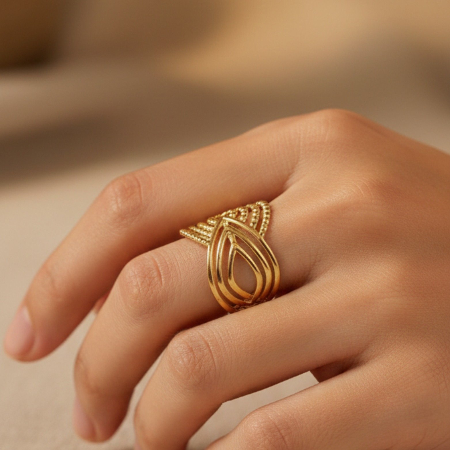 Textures: Combination of smooth high-polish and beaded/milgrain accents
